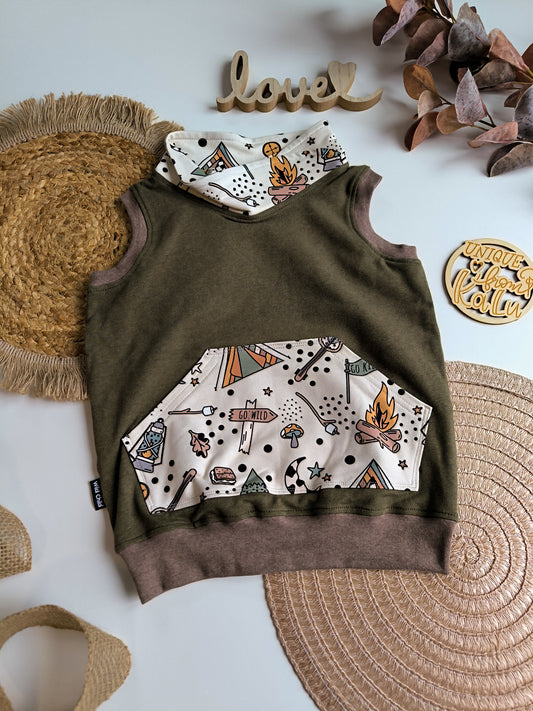 Latzhose mit Rüschen Trägern, Beinteilung und Bauchtasche ab Gr. 56