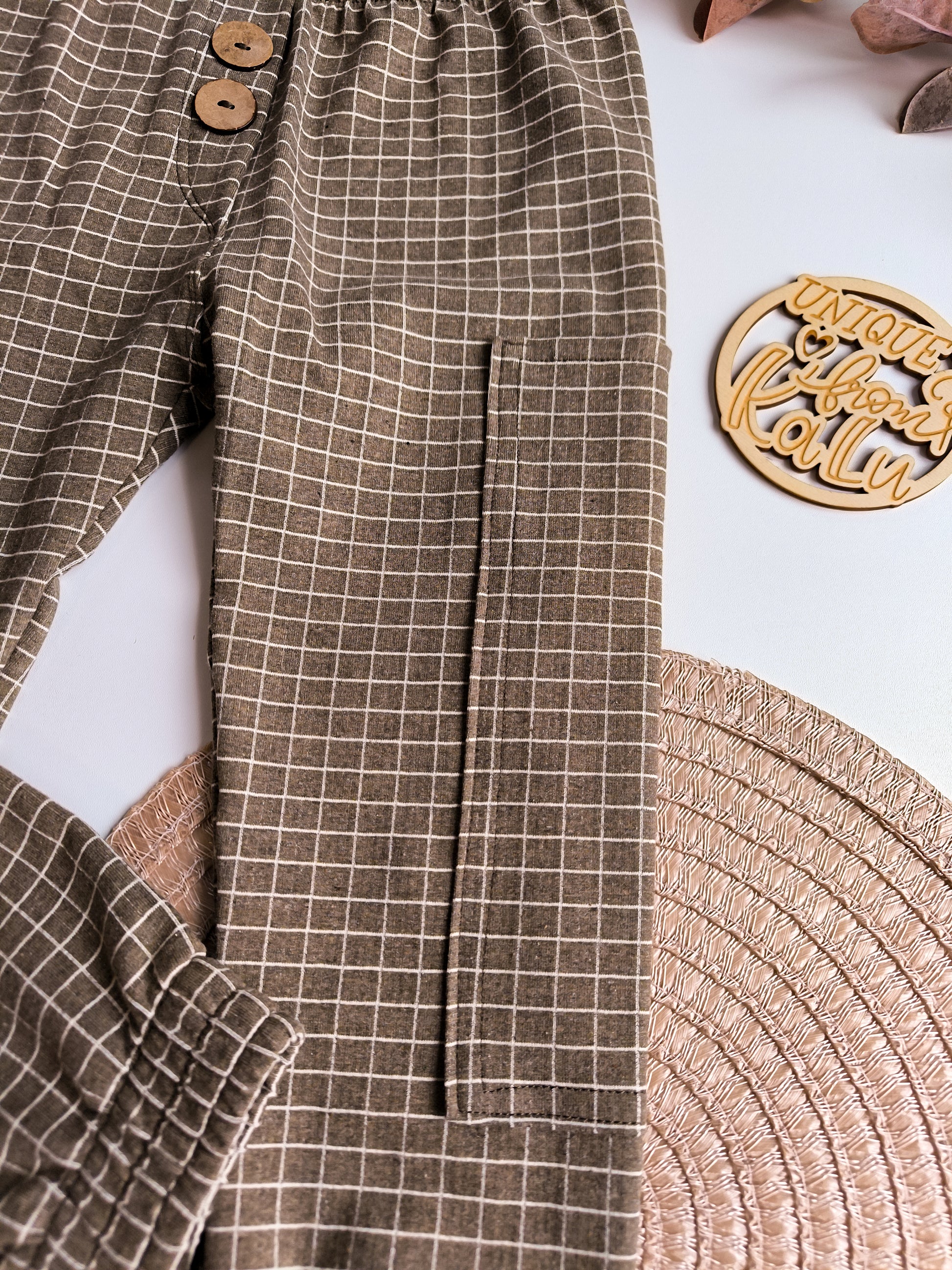 •Individuelle Details: Die dekorativen Holzknöpfe verleihen der Hose einen hochwertigen, natürlichen Handmade-Charme.